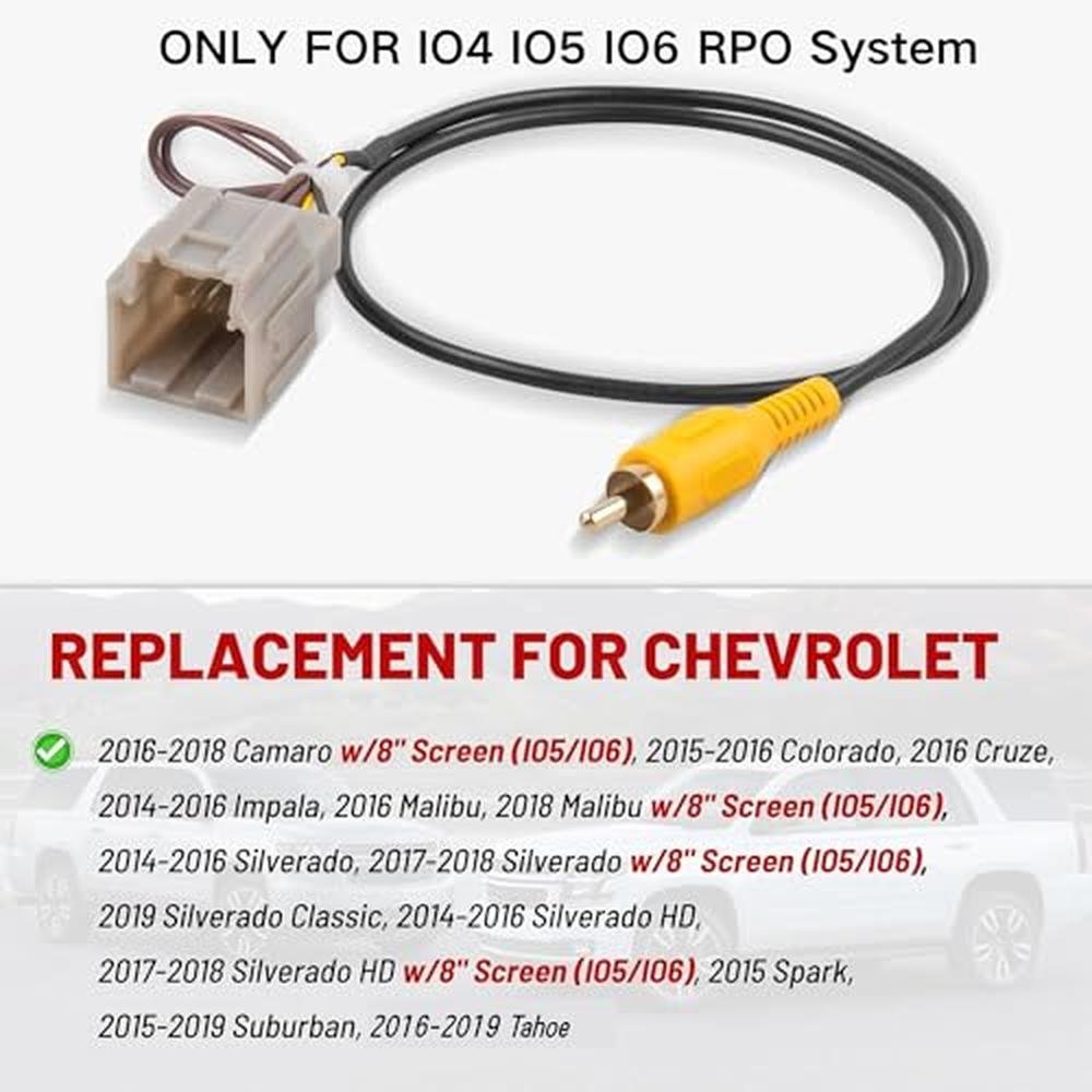 Reverse Camera Retention Wiring Harness | RED WOLF RWGM2641 RCA Plug | For 2014-2016 GM Chevy Silverado GMC Sierra with IO4 IO5 IO6 RPO Systems