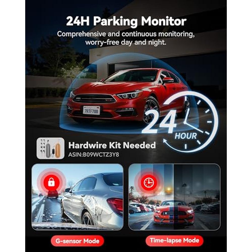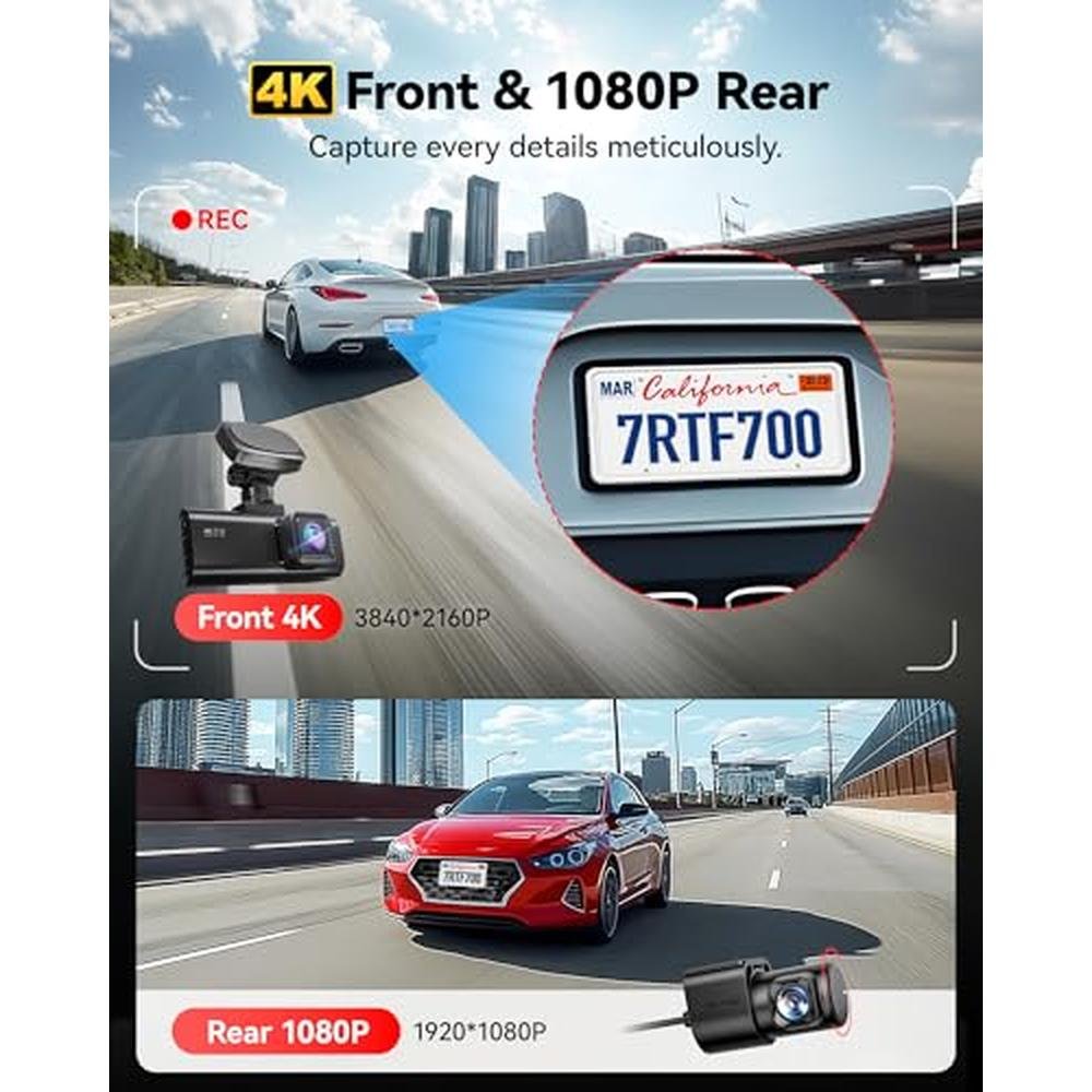 - 4K UHD dashcam front camera and 1080 Full HD backup camera for crystal clear recordings