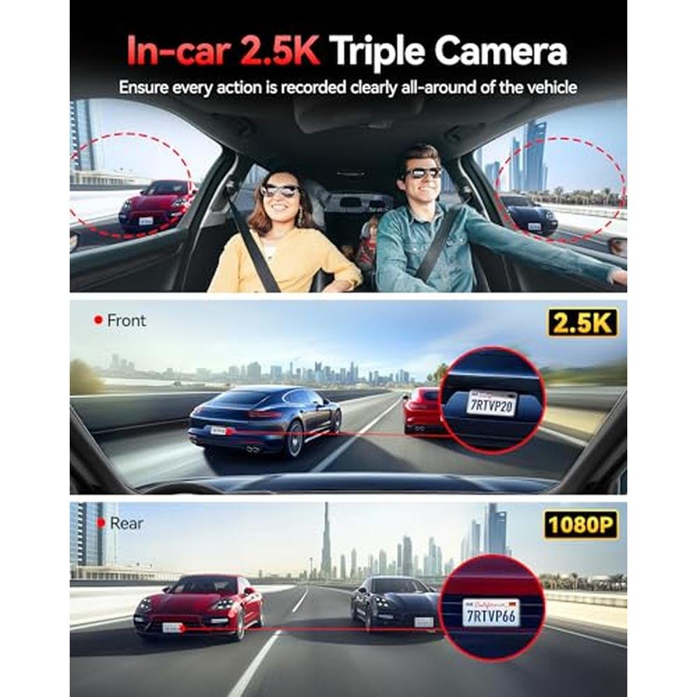 - 2.5K+2.5K+1080P triple-channel recording for crystal-clear footage