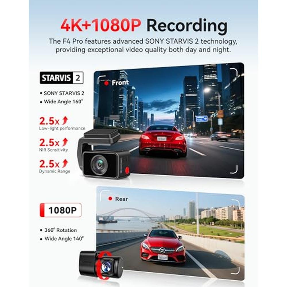 • 4K + 1080P Dual Recording with STARVIS 2 technology for crystal-clear footage