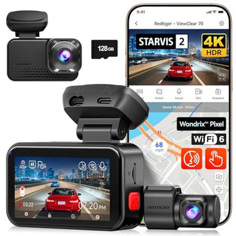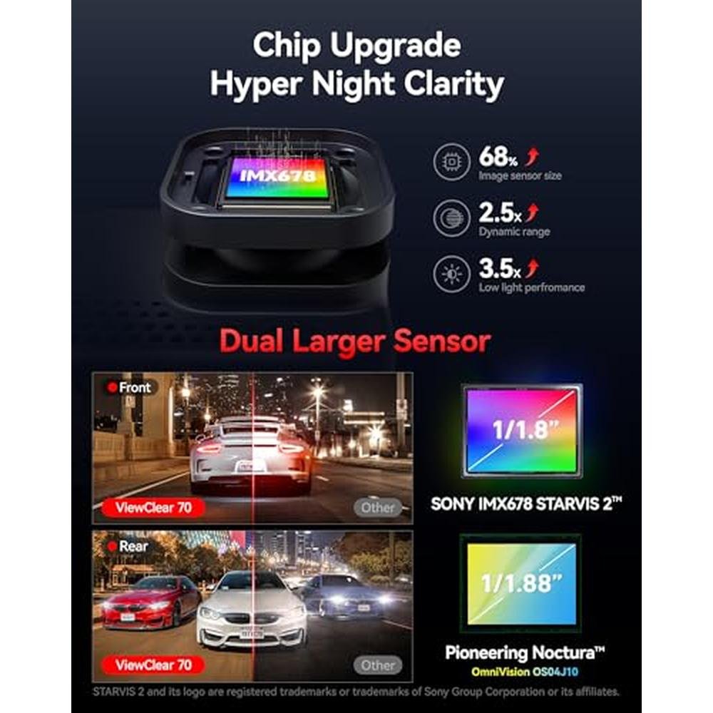 Dash Redtiger | REDTIGER ViewClear 70 4K+2.5K Dash Cam Front and Rear | STARVIS 2 IMX678 x Noctura Sensor with Dual HDR Hyper Night Clarity
