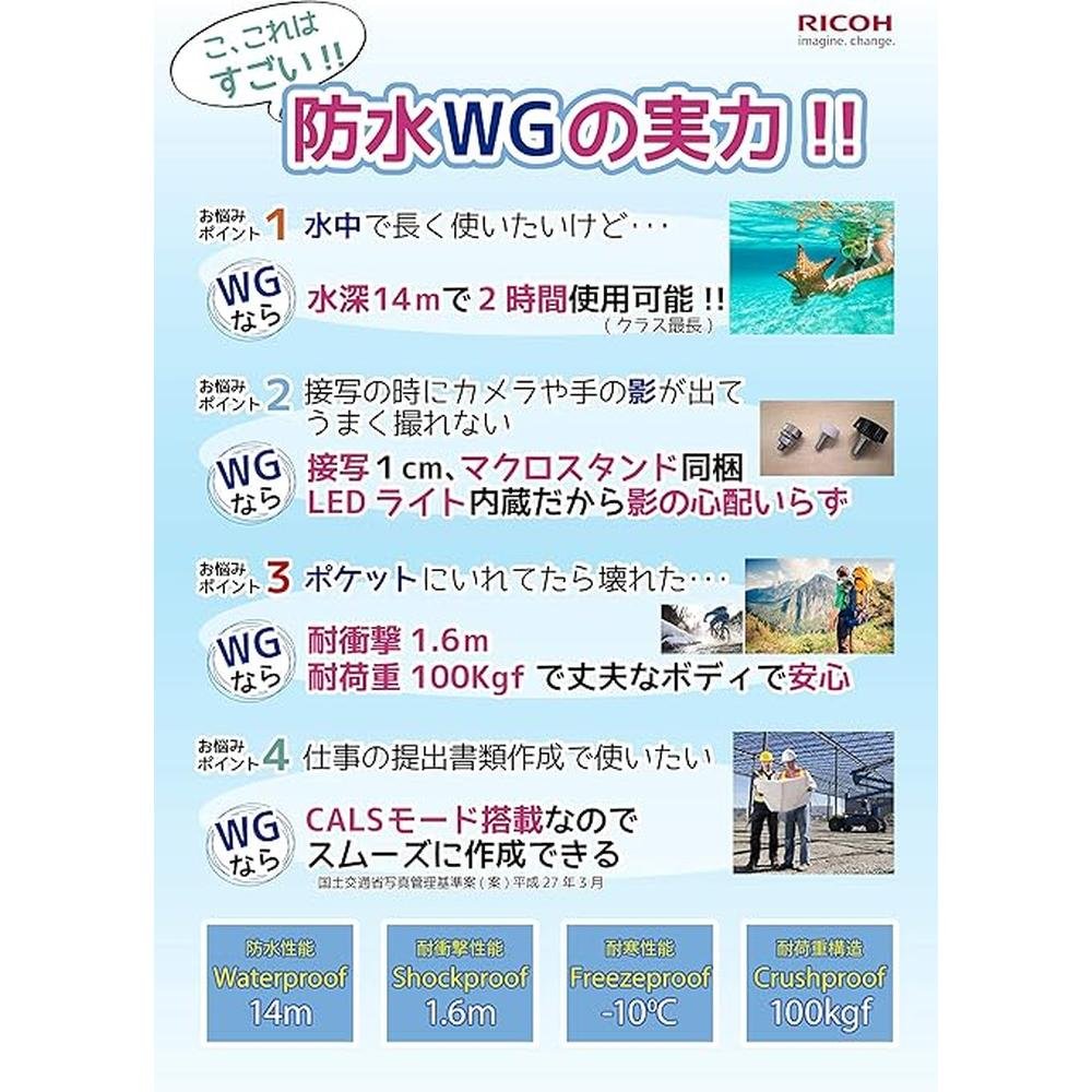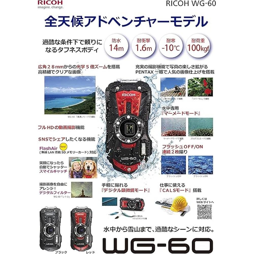 Ricoh Waterproof Digital Camera WG-60 | 14m Water Resistance | Shockproof and Cold-Resistant