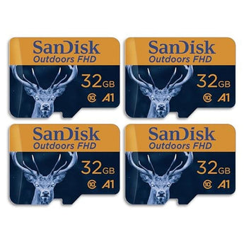 SanDisk 32GB 4-Pack Outdoors FHD microSDHC UHS-I Memory Card with SD Adapter (4x32GB) - Up to 100MB/s, Full HD, C10, A1, Trail Camera Micro SD Card - SDSQUNR-032G-GN4VV