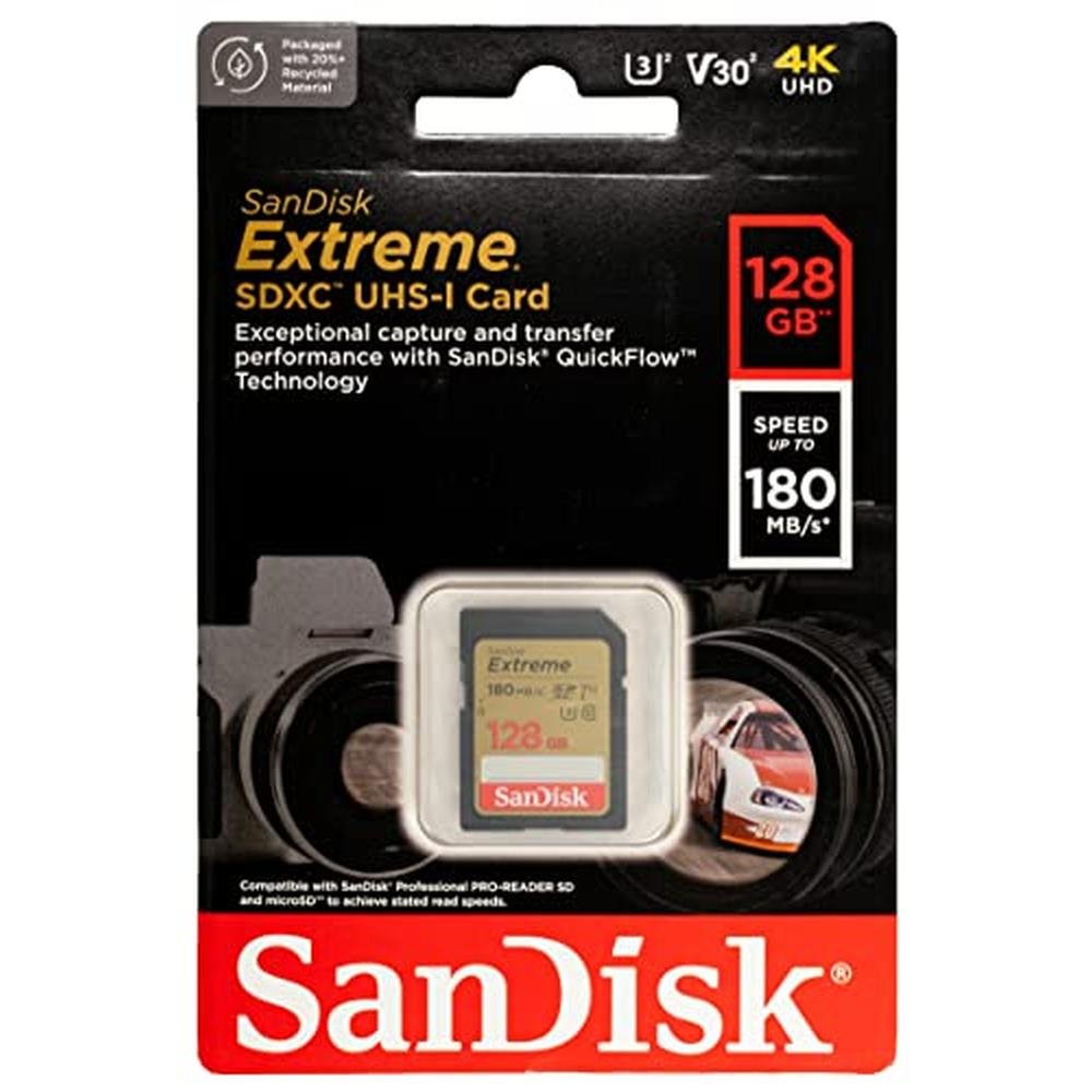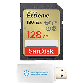 SanDisk Extreme 128GB SD Memory Card Works with Sony Alpha a7C, a6600, a6100, a6400 Mirrorless Camera (SDSDXVA-128G-GNCIN) U3 SDXC UHS-I Bundle with (1) Everything But Stromboli Micro & SD Card Reader