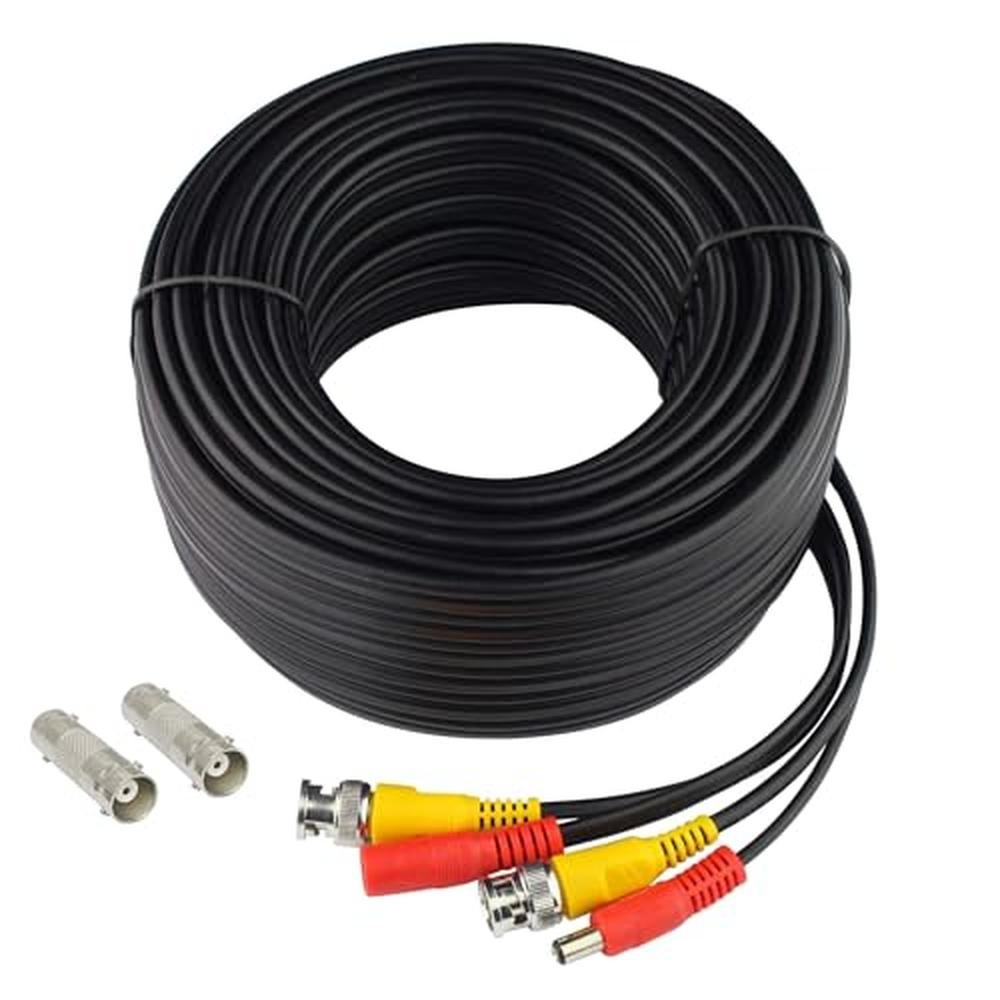 SatelliteSale CCTV Security Camera BNC Cable Siamese Pre-Made 2-in-1 Video and Power PVC Black Cord simplify the installation of the surveillance system by using one cable to transmit High Definition video and provide safe power supply. It is pre-made so that you dont have to worry about cutting and crimping the ends of your own cables before installing them. It makes the installation easier than ever. Enjoy high-definition video transfer both in commercial and residential setups. We offer different cable sizes, including 20 feet, 50 feet, and 100 feet long cable. Designed specially to support the latest equipment with a high-speed connection. It is a cost-effective solution for both residential and commercial setups, making wiring for the security camera system a eeze of cold air. The cable is composed of a copper core, which is highly conductive and durable. This cable is waterproof and can be used indoors and outdoors. It transmits video signals and provides DC power for the surveillance camera system. Our CCTV cable is compatible with all and surveillance DVR camera systems, HDCVI, HDTVI Cameras, Analog, DVR AHD CVI TVI. We assure the lifetime service of each cable to deliver a positive experience to our clients.