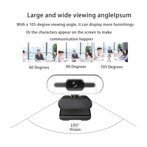Webcam Senecesli | SENECSLI 1080P HD Webcam with Microphone | Wide Angle with Adjustable Ring Light for Windows and OS X
