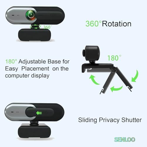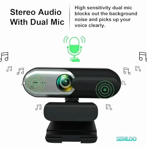 Experience seamless video conferencing with the SENLOO Webcam with Microphone, a premium desktop webcam designed for high-quality video calls on your computer. Featuring advanced autofocus technology and 1080p HD resolution, this top-tier desktop web cam ensures crystal-clear video quality, making it perfect for Zoom, Skype, Teams, and Webex meetings. The built-in microphone captures audio with clarity, while the privacy cover provides an extra layer of security when not in use. Compatible with most desktop computers, this USB web camera is easy to set up and use, allowing you to focus on what matters most - staying connected with colleagues, friends, and family. Elevate your video communication experience with this versatile 1080p HD webcam, designed for seamless compatibility with popular platforms and delivering professional-quality video for a lasting impression in your virtual interactions.