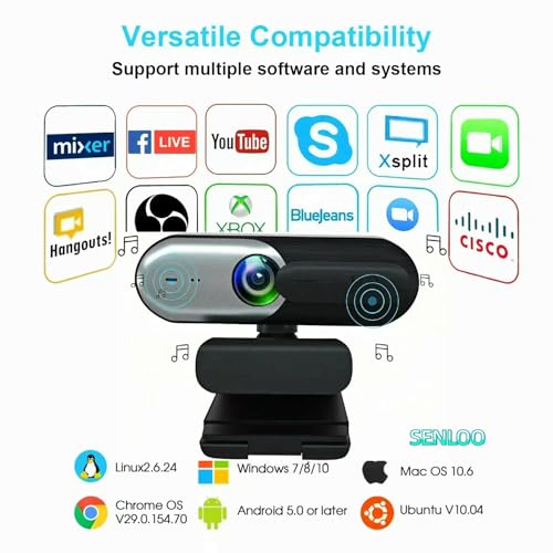 Unlock the full potential of your virtual interactions with the SENLOO Desktop Webcam, engineered to provide exceptional video quality and clear audio. With its advanced autofocus feature and 1080p HD resolution, this premium webcam ensures you stay crystal clear throughout your video calls and presentations. The built-in microphone captures clear audio, making it perfect for virtual meetings, online classes, and catching up with friends. A thoughtful privacy cover gives you control over your security when the camera isn't in use. This USB webcam is designed for seamless compatibility with popular platforms, including Zoom, Skype, Microsoft Teams, and Webex, making it an essential tool for remote work and distance learning.