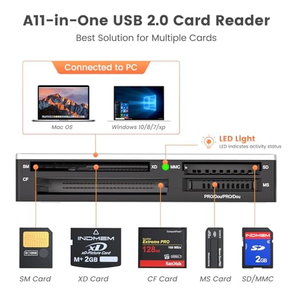 SmartMedia Card Reader Writer All-in-1 USB Universal Multi Card Adapter Slim Hub Read Smart Media, xD, SD, SDHC, SDXC, UHS-I, MMC, MS Pro Duo, CF, MD, Camera Flash Memory Cards For Windows, Mac, Linux