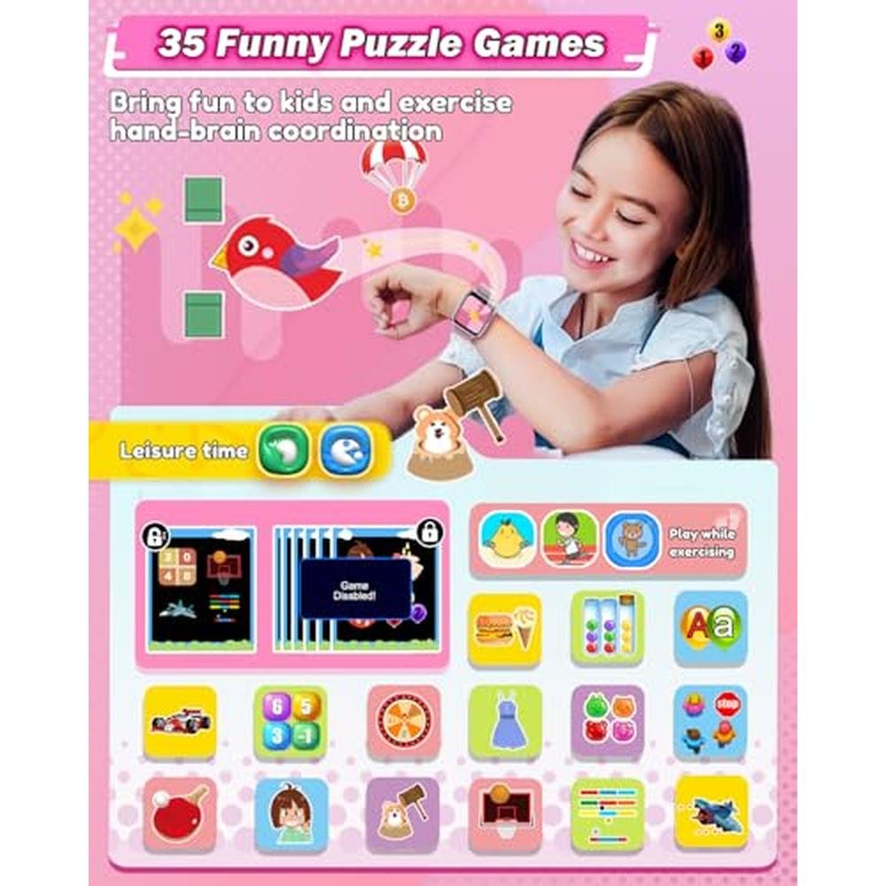 Sueseip Kids Smart Watches Girls Toys Age 6-8, HD Touchscreen Dual Cameras Kids Watch for Girl Ages 8-10, Kid Toy with 35 Games MP3 Learn Card for 5 6 7 8 9 Year Old Girl Christmas Birthday Gifts