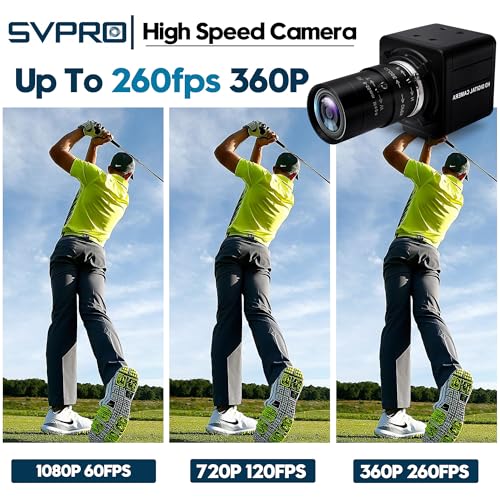 Experience the ultimate in high-speed video capture with the SVPRO 260fps High Speed Golf Swing Camera, perfect for analyzing your golf swing in stunning 1080p at 60fps. With its manual focus capability and 5-50mm lens, this computer webcam offers 10X optical zoom for capturing close-ups with exceptional clarity. Compatible with a wide range of operating systems including Windows, Linux, MacOS, Android, and Raspberry Pi, this versatile camera is ideal for golf enthusiasts, coaches, and professionals looking to improve their game. The SVPRO 260fps camera is designed to provide smooth and detailed video, making it easier to review and perfect your golf swing technique. Whether you're practicing your drive, chip, or putt, this camera is the perfect tool to help you elevate your game.