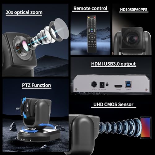 Experience exceptional video quality with the SZOOMSY PTZ Camera, featuring 20X optical zoom and 1080P Full HD resolution at 60fps. Designed for seamless video conferencing and streaming, this USB/HDMI camera is perfect for conference rooms, church events, and online meetings. Compatible with popular platforms like Zoom, Skype, and OBS, it's easy to set up and use for professional-grade video calls. Whether you're looking for the best camera zoom for teams or seeking a top-rated zoom camera for your next event, the SZOOMSY PTZ Camera delivers outstanding performance and clarity. With its advanced camera zoom lens and intuitive controls, you can effortlessly zoom in and out to capture every detail, making it an ideal choice for premium video production.
