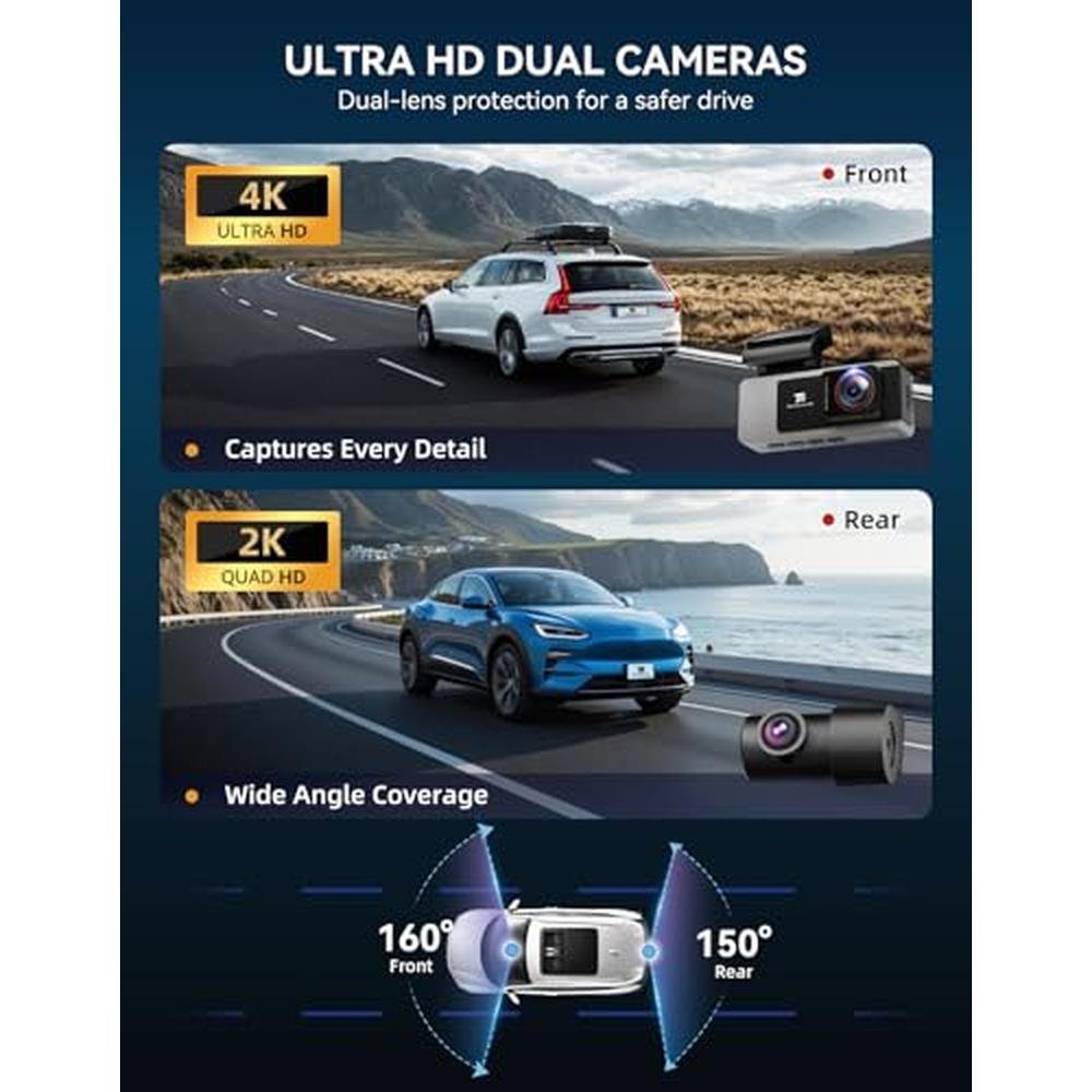 Dash Cam | TECXLERON 4K Dual Dash Cam Front and Rear | Starlight Night Vision and GPS