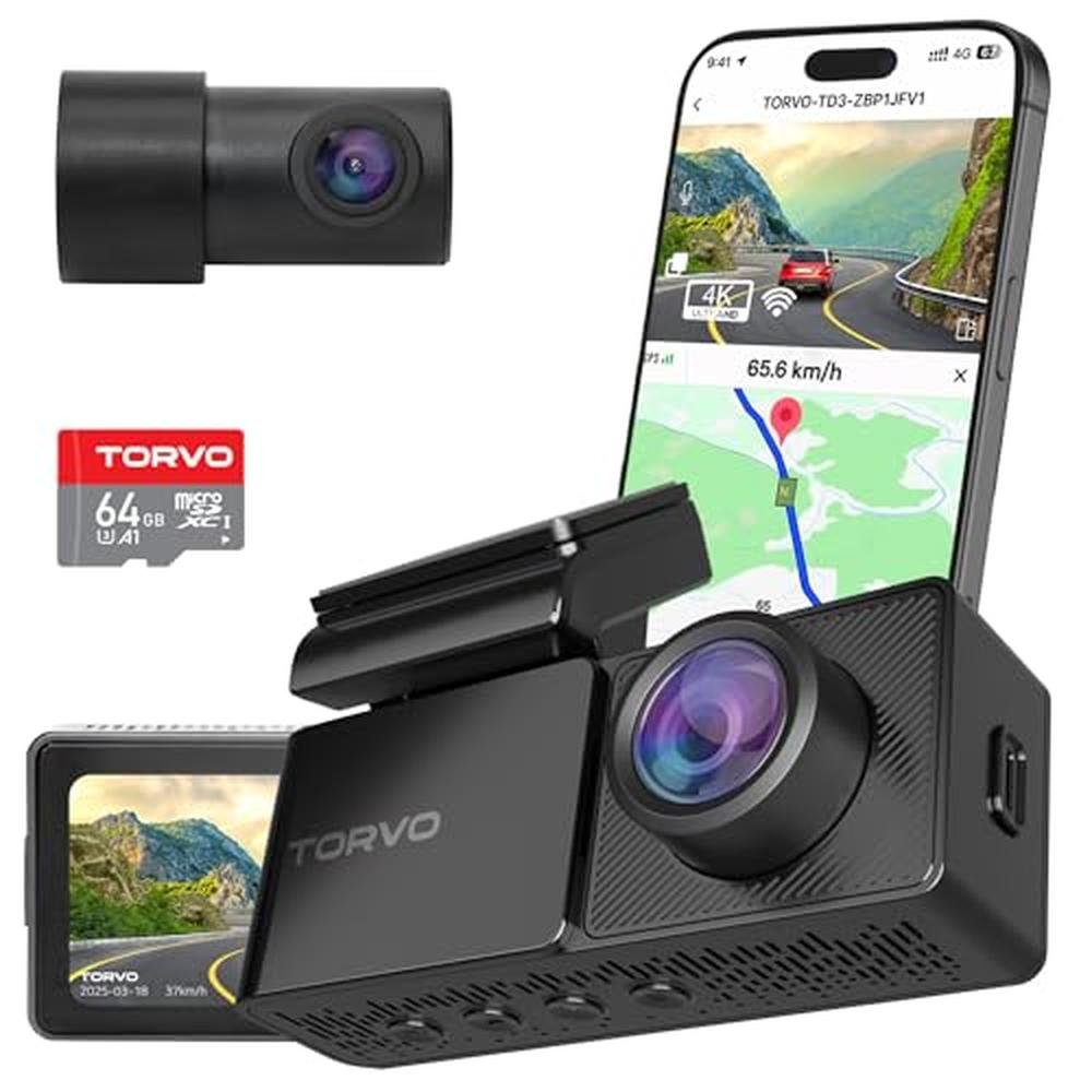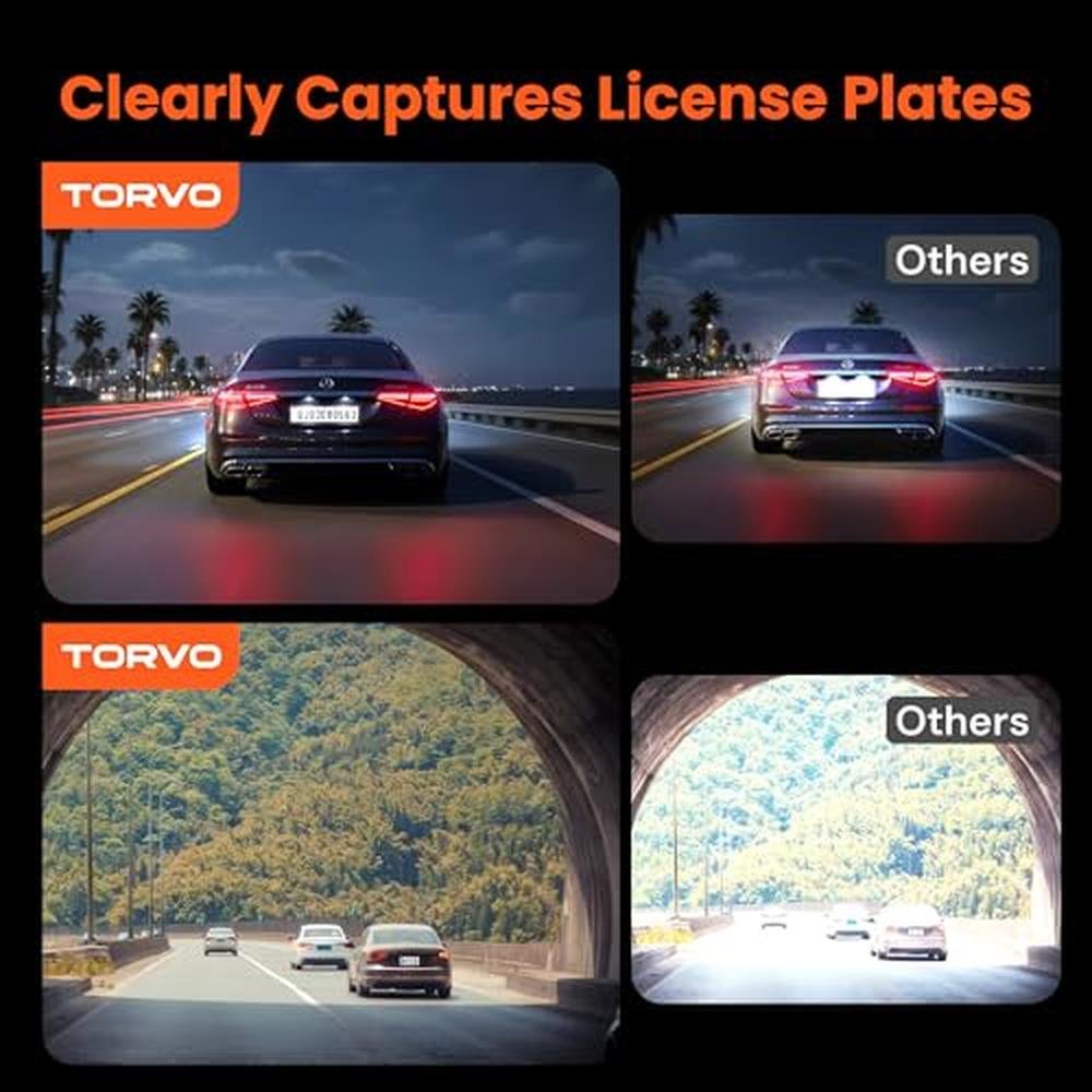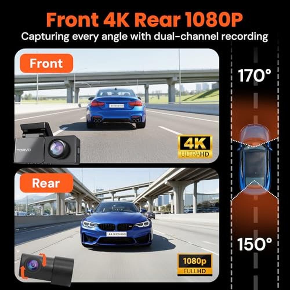 - The TORVO TD3 dash cam front and rear setup captures ultra-sharp footage with a 4K front dash camera and 1080P rear car camera, delivering rich color and crystal-clear details day or night