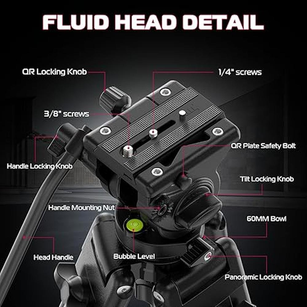 • Advanced 360-degree fluid head for smooth and precise camera movement