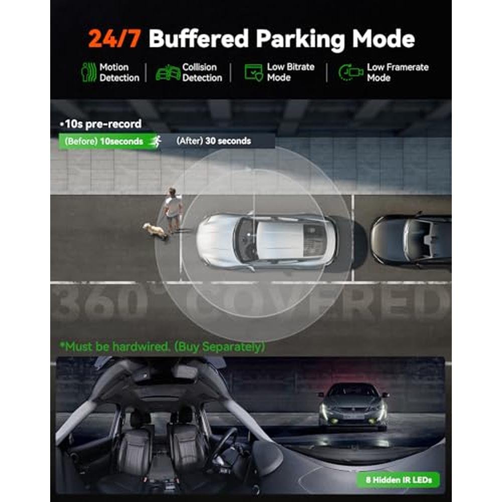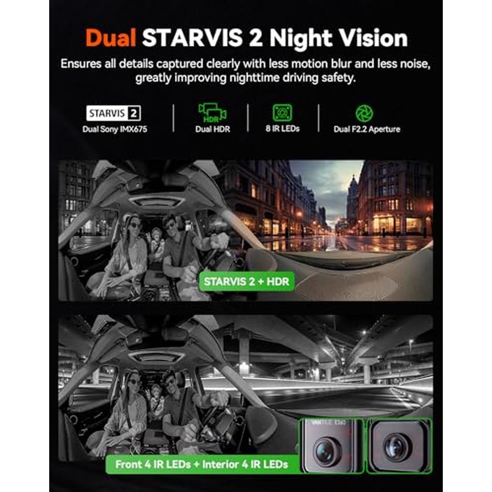 | Special features | 5.2K (5184x1944P) 360 Panoramic Recording, Dual IMX675 Sensor with STARVIS 2 technology, HDR, 8 IR LEDs, Dual-Sys. GPS Logger, Smart Voice Control, 1.54 IPS Touchscreen, Built In Supercapacitor, Built-In Microphone & Speaker, Support 1TB Max, Built-In WiFi, G-Sensor, Loop Recording, Night Vision |