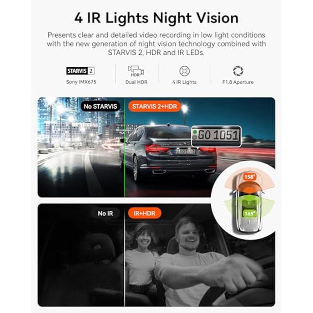 - The dual dash camera offers front and inside recording in stunning 2.7K resolution, with HDR and IR night vision for enhanced visibility