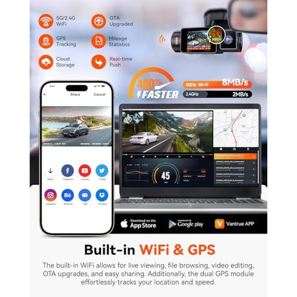 - The Vantrue N2X 2.7K Dash Cam features a high-performance 5G WiFi connection for seamless video previewing and editing