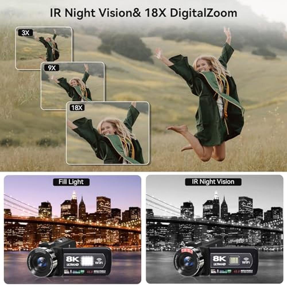 - Capture stunning 48MP photos and record ultra-high definition videos at 15FPS with our 8K Camcorder