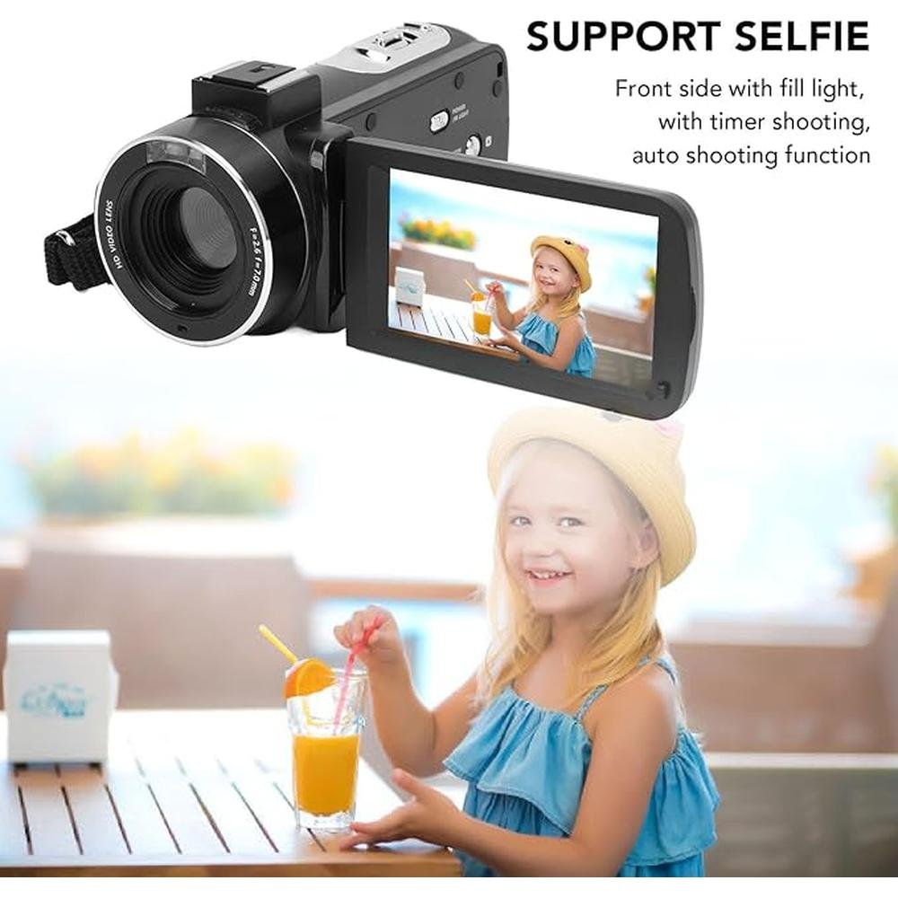 - Selfie Support The digital video camera features a front fill light for convenient selfies, as well as timer and auto shooting modes for wonderful photos and videos.