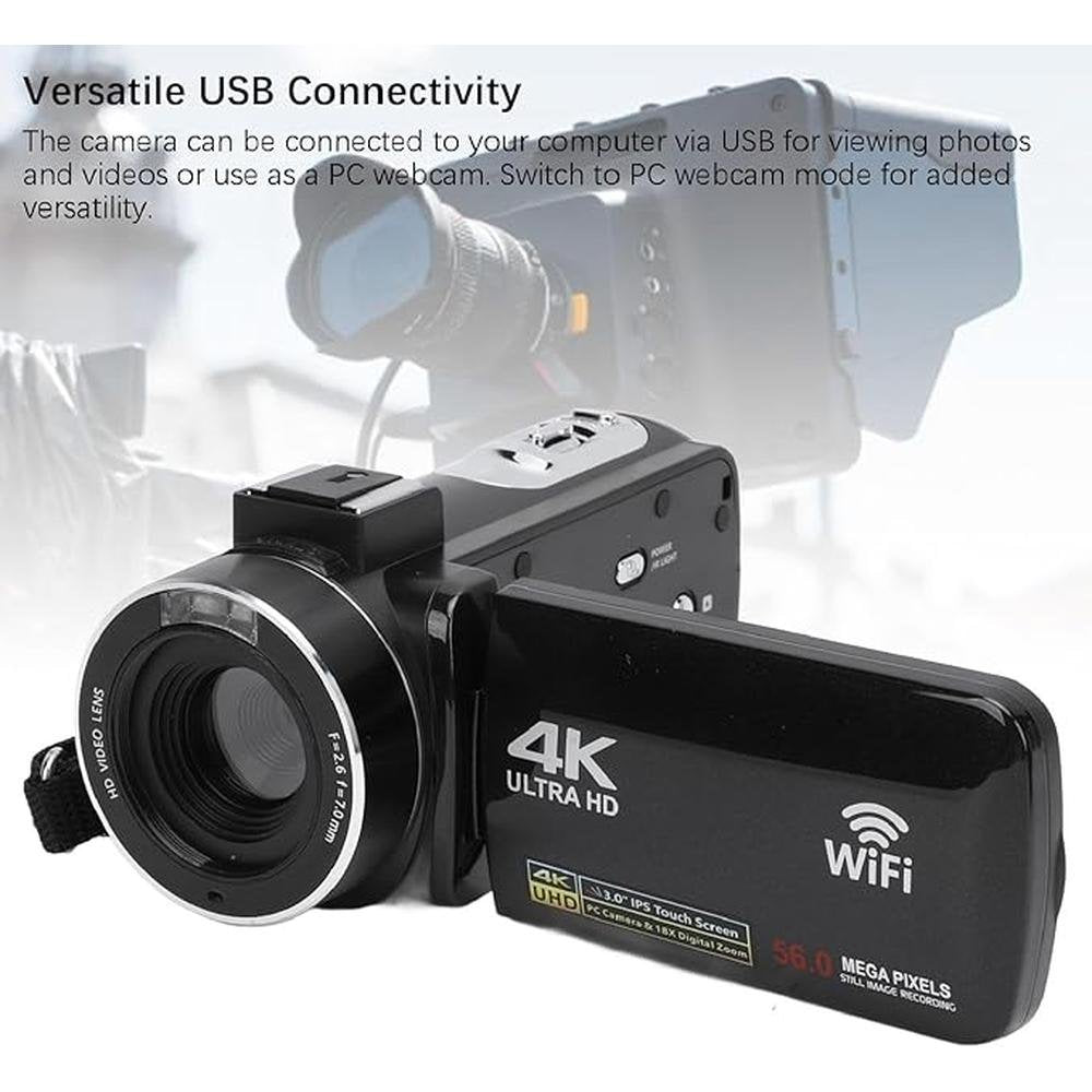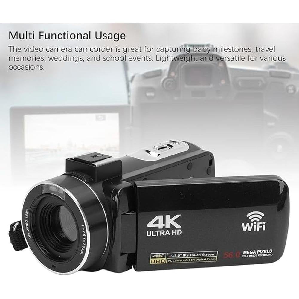 Yunseity Video Camera Camcorder, 4K UHD 30FPS 56MP HD Digital Camera Recorder, 3.0 Inch 270 Degree Rotation LCD 18X Digital Zoom Camcorder for Travel Vlogging