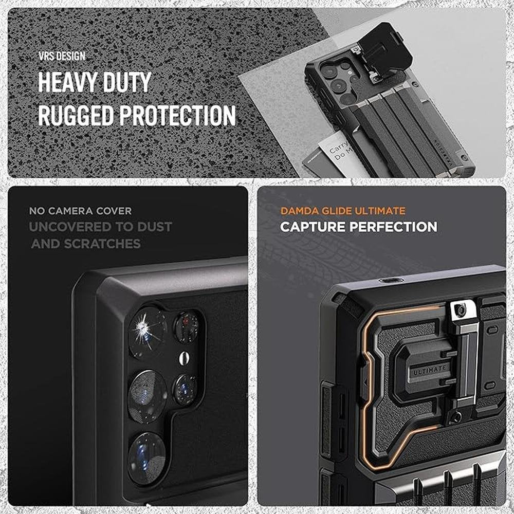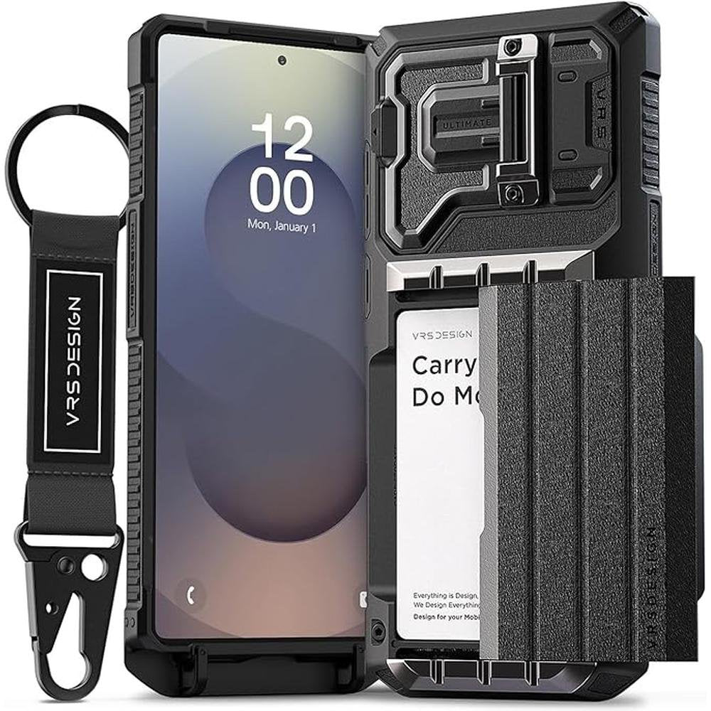 VRS DESIGN Damda Glide Ultimate for Galaxy S25 Ultra (2025), Premium Sturdy Fully Covered Camera Lens Protection Wallet Case with Multi-Functional Strap (Matte Black)
