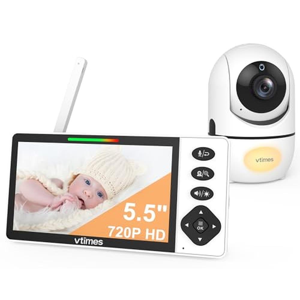 VTimes Baby Monitor with Camera and Audio, 5.5" 720P HD Screen Video Baby Monitor No WiFi VOX Mode Pan-Tilt-Zoom Alarm and 1000ft Range, Night Vision and Night Light, Ideal for Baby/Elderly/Pet