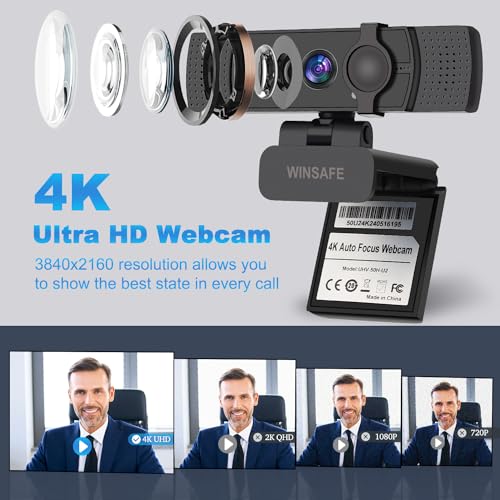 - The WinSafe Webcam 4K is equipped with dual noise-canceling microphones and auto-focus for a more immersive experience