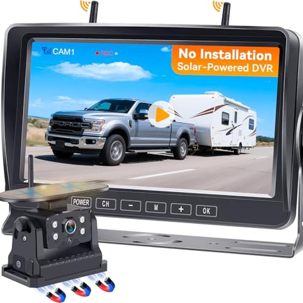 Experience the ultimate in convenience and safety with our Wireless Backup Camera for RV, featuring a 7-inch magnetic HD 1080P recording solar rear view camera. Designed for easy, install-free setup, this camera backup system provides a no-delay signal and comes equipped with a touch button monitor. Ideal for RV owners, this backup camera best buy offers a reliable and high-quality solution for enhancing visibility and reducing blind spots. Whether you're looking for a camera backup system for your RV or simply seeking the best backup camera for your needs, our product is a top choice, offering a seamless and intuitive user experience. With its advanced features and competitive pricing, it's no wonder our wireless backup camera is a top page result for those searching for a reliable camera backup solution.