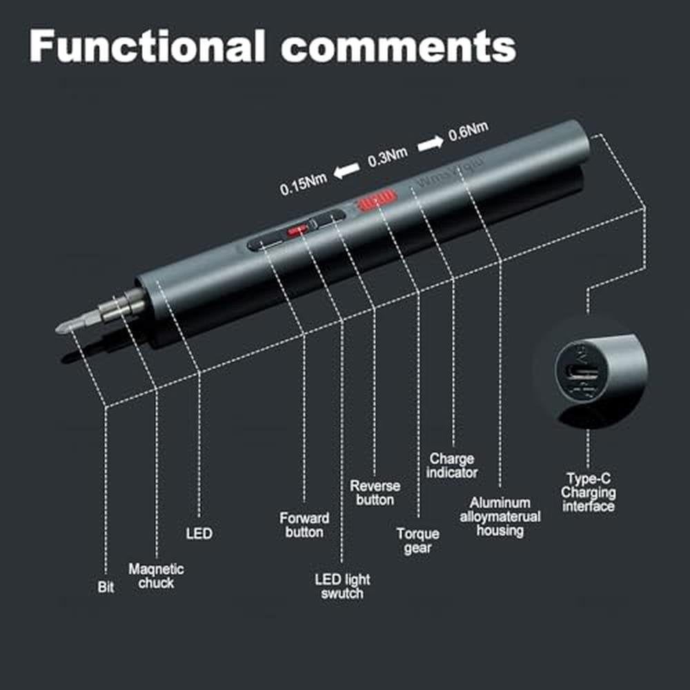 • 3 Torque SettingsThe WmsWqiu electric precision screwdriver features 3 gear torques ranging from 0.15-0.6N.m, allowing you to adjust the torque precisely to meet various needs.
