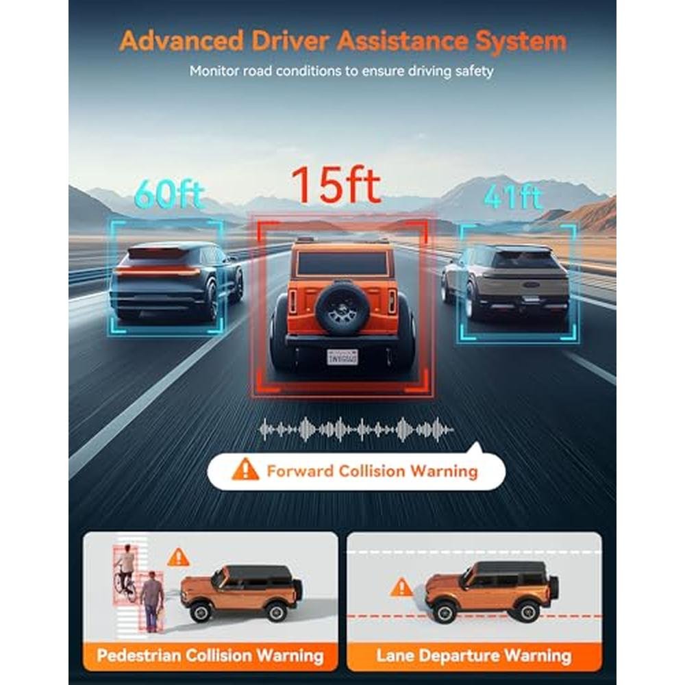 - Features ADAS and BSD for lane departure warning and forward collision alert