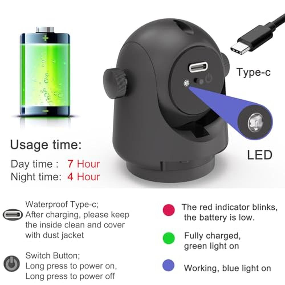 • The camera has a 360 degrees rotatable body and can be used as a side, front, and rear view camera with the ability to flip the image on the APP