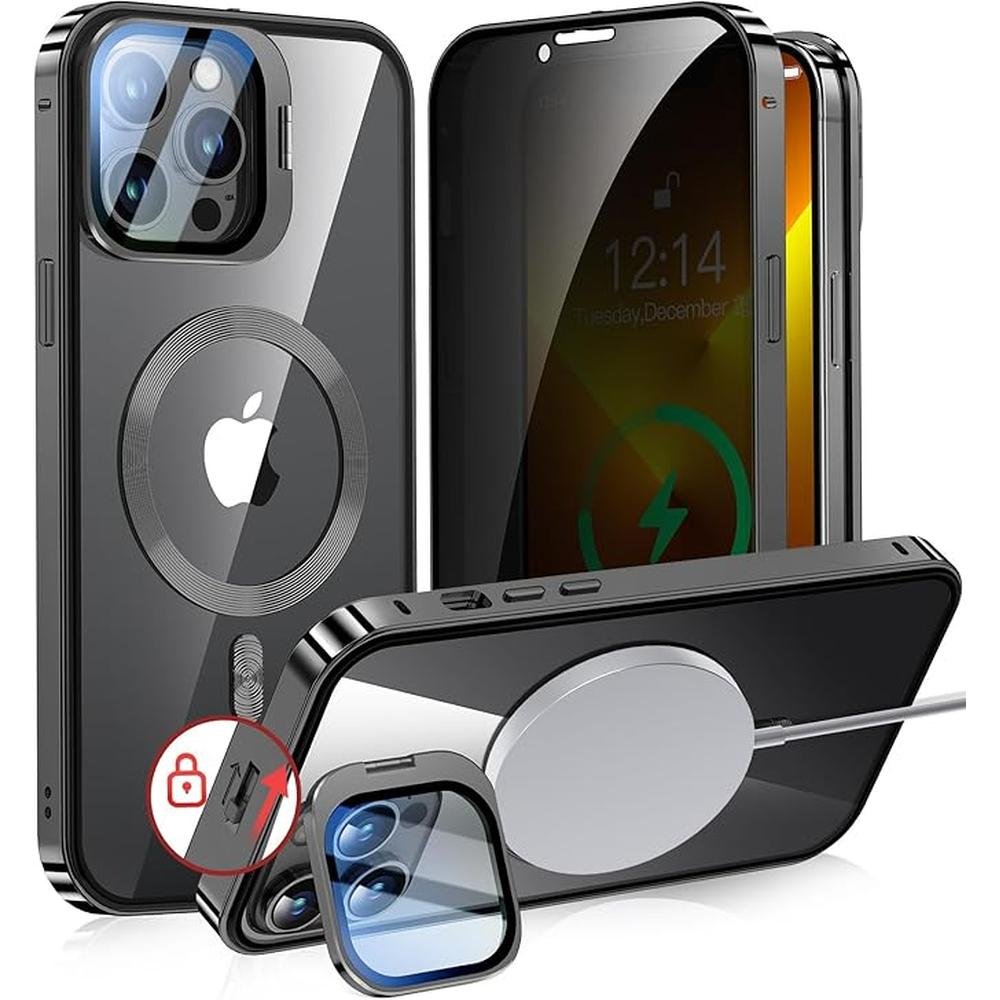 YUNHUASM[Camera Invisible Stand & Slide Pop-up Lock Magnetic Privacy Case for iPhone 13 Pro Max [Compatible with MagSafe] [Full Lens Protection+Invisible Kickstand] Full Body Metal Bumper Cover-Black
