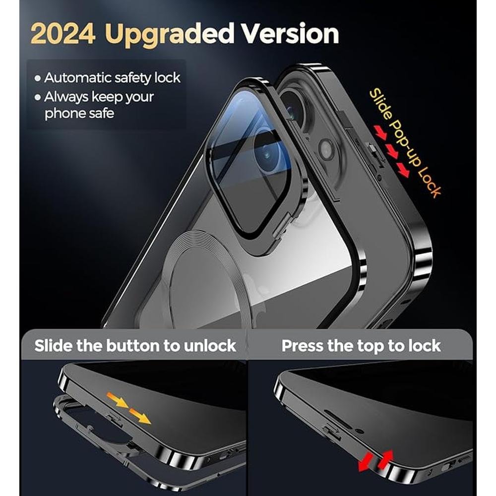 - Instant Slide Lock, 360 full body ProtectionThis case features a patented auto-lock design with a sliding button at the top to ensure a seamless fit between the front and back covers. A Slide(the button) to open and a press(the top) to lock. Even dropping it will not cause the case to separate, locking your iPhone tightly. Both sides of the case are made of 9H tempered glass and the sides are made of aviation-grade aluminum alloy material. Your iPhone can get a 360 full body protection.