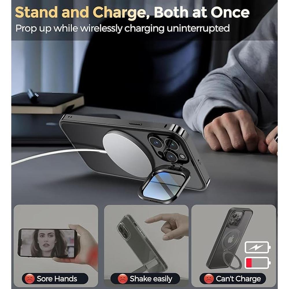 - Radical innovation Stand Up, Power Up Do I have to use a stand or Magsafe function alone? No 400 million iPhone fans say, Magsafe and kickstand are inseparable from life Whether it is used horizontally or vertically, it can be used all day without worrying about running out of power Simply connect the Magsafe charger for easy use When your hands are busy with trifles, with a simple flip, the stand can be adjusted from 0 to 180 , enjoy free adjustment and stable vision.