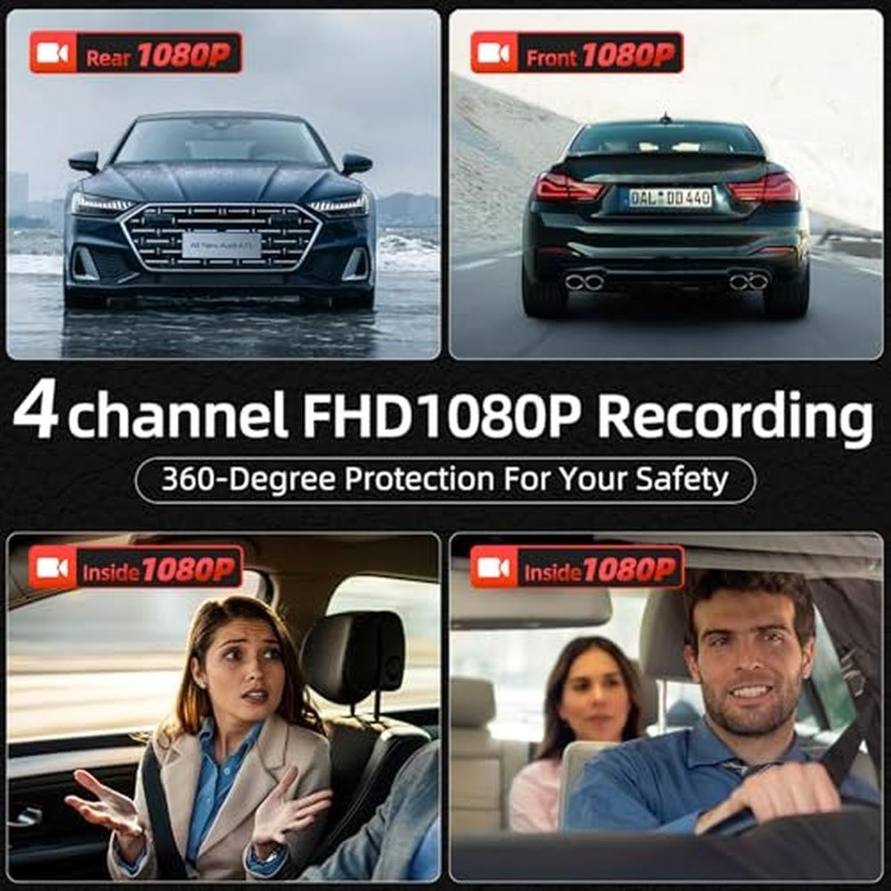 Mirror Dash Cam | Zunfly 4 Channel Front and Rear | 12 FHD 1080p IR Night Vision WiFi GPS Parking Monitor
