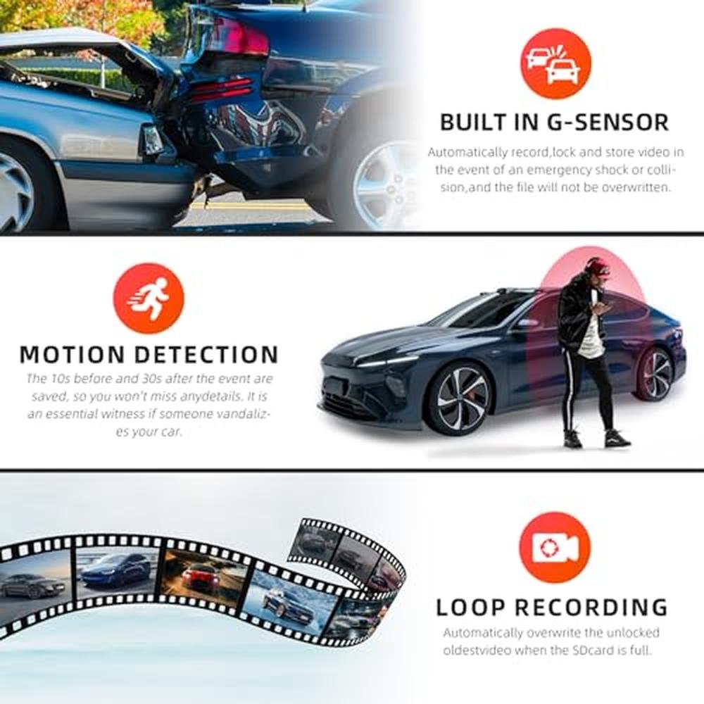| Special features | IR Lights, Wifi, GPS, Loop Recording, G-sensor, WDR, Night Vision, Motion Detection,1080P FHD, 64GB SD Card, Voice Recording, Parking Mode, 170 Wide Angle |