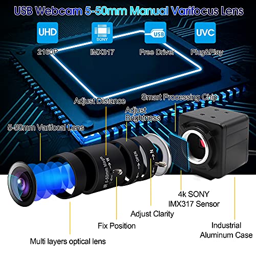 4K USB Camera Manual Zoom | IMX317 Varifocal Lens | Industrial Video Applications