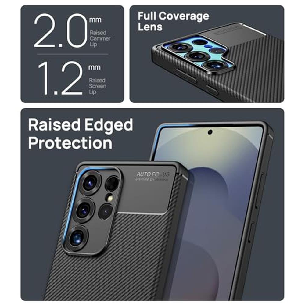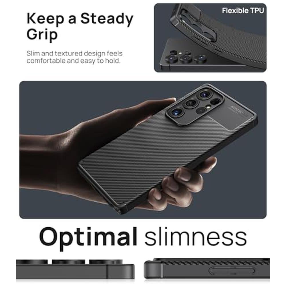 ATATOO for Samsung Galaxy S25 Ultra Case, Support Wireless Charging, Slim Non-Slip [Full Camera Protection] Shockproof Soft TPU Protective Phone Case for Galaxy S25 Ultra 6.9" 5G 2025, Carbon Black