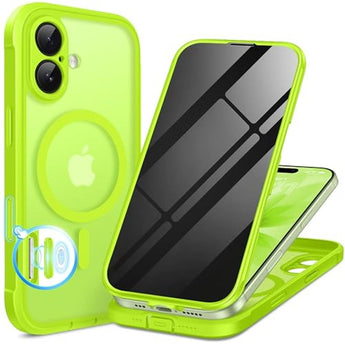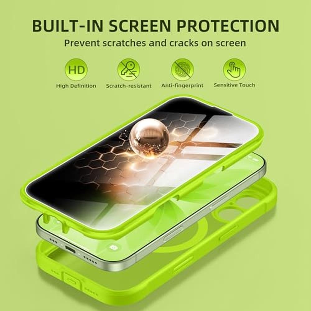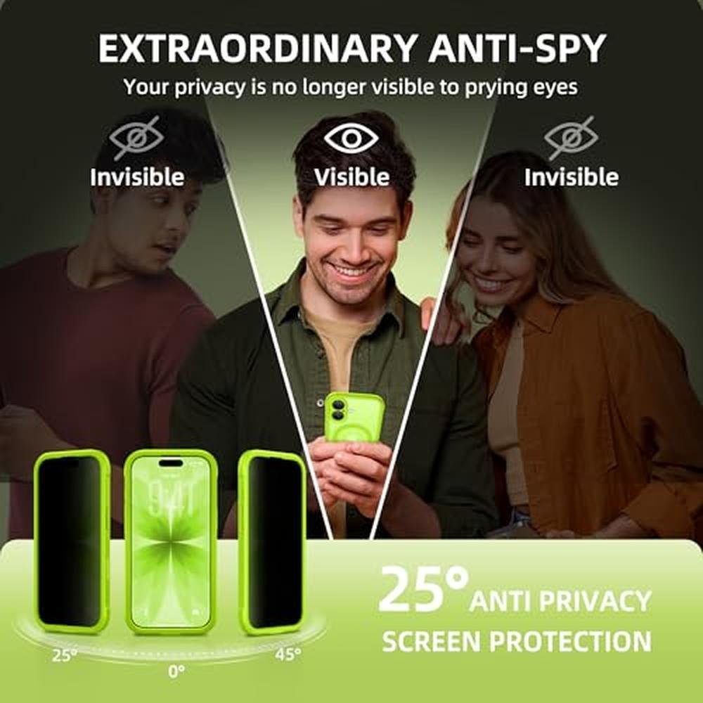 BERFY for iPhone 17 Case, Compatible with MagSafe, Built-in Privacy Screen Protector and Camera Protection, Anti-Spy Full Body Shockproof Matte Phone Case for 17 6.3", Bright Green