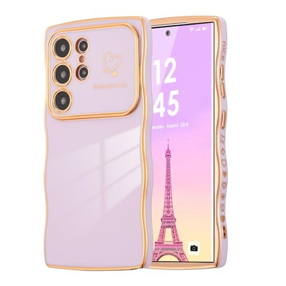 - Unique Plating Design: This for S25 Ultra phone case, with special curly wave frame aesthetic design, provides fresh feeling, easy to hold your phone. Little saying on the back and a string of cute hearts on the side decorates this phone case. A nice gift for your families and friends.