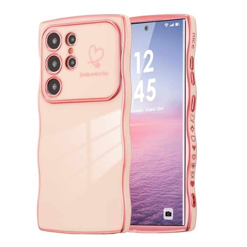 - Unique Plating Design: This for S25 Ultra phone case, with special curly wave frame aesthetic design, provides fresh feeling, easy to hold your phone. Little saying on the back and a string of cute hearts on the side decorates this phone case. A nice gift for your families and friends.