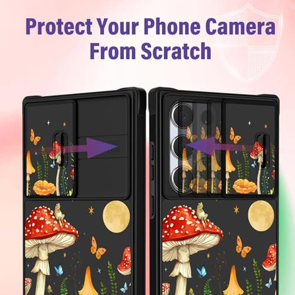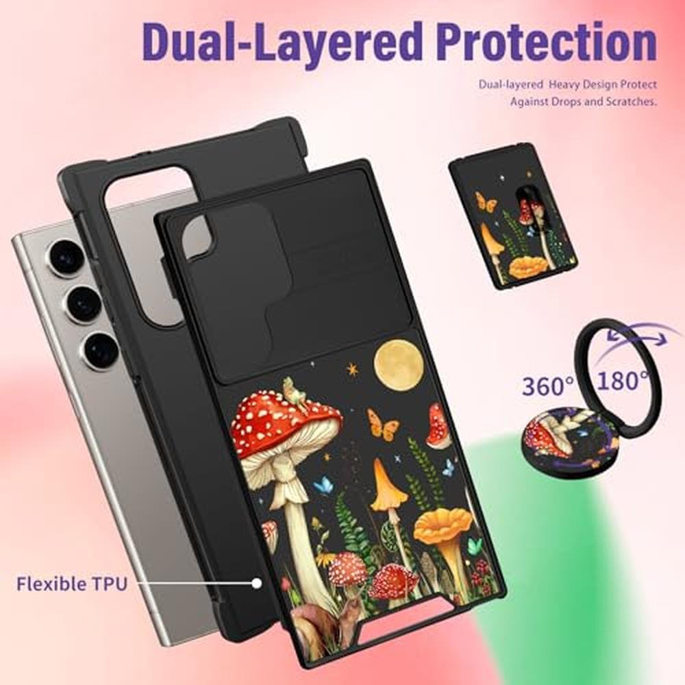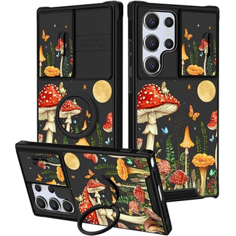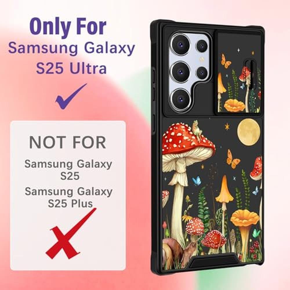Funermei for Samsung Galaxy S25 Ultra Case - Women Girls Cute Phone Cover Pretty Aesthetic Girly Mushroom Unique Design with Camera Cover and Ring Stand Funda for Samsung S25 Ultra Case