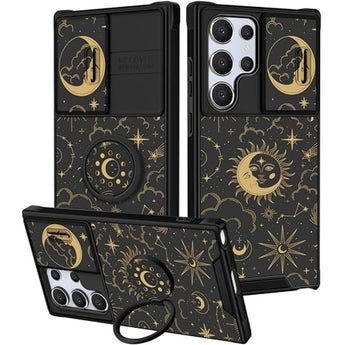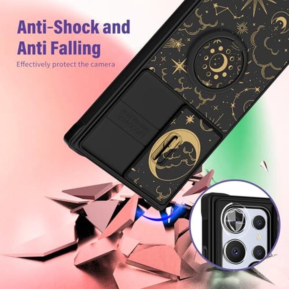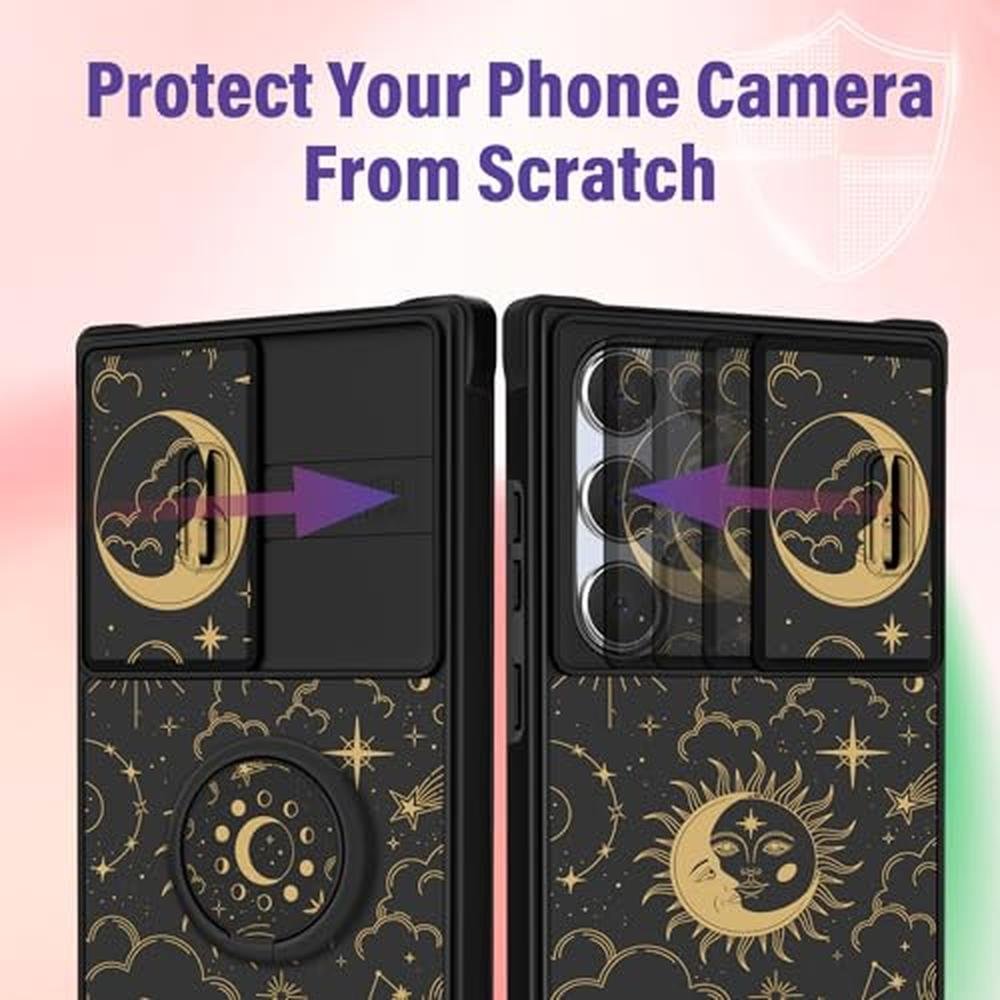Funermei for Samsung Galaxy S25 Ultra Case - Women Girls Cute Phone Cover Pretty Girly Aesthetic Stars Sun Moon Unique Design with Camera Cover and Ring Stand Funda for Samsung S25 Ultra Case