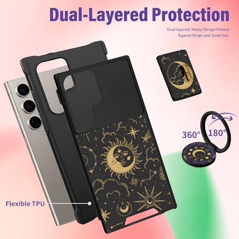 - Matching Ring Holder: The pattern of this ring stand and the the phone case are matching. The a ring stand holder of this for S25 Ultra phone case can be rotated 360, allows you to use your phone at any standing angle, so you can easy to hold your phone while watching video