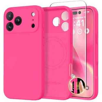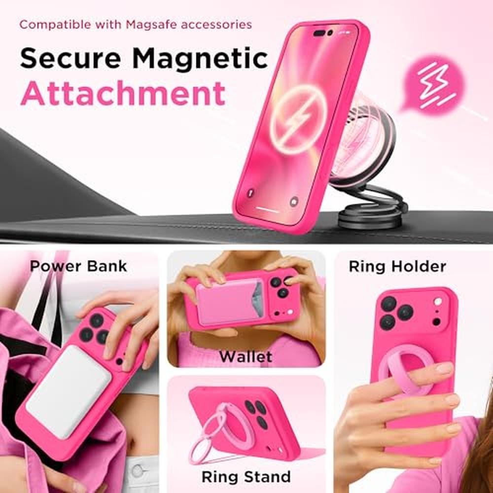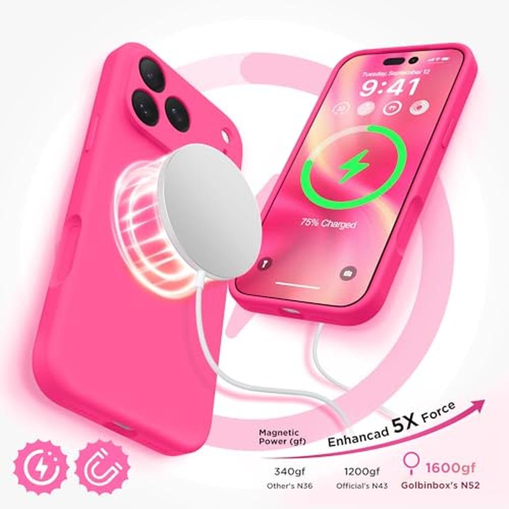 GolbinBox Magnetic for iPhone 17 Pro Max Case, Compatible with MagSafe, [Full Camera Protection] [Screen Protector], Silicone Shockproof Phone Cover with Anti-Scratch Microfiber Lining, Hot Pink