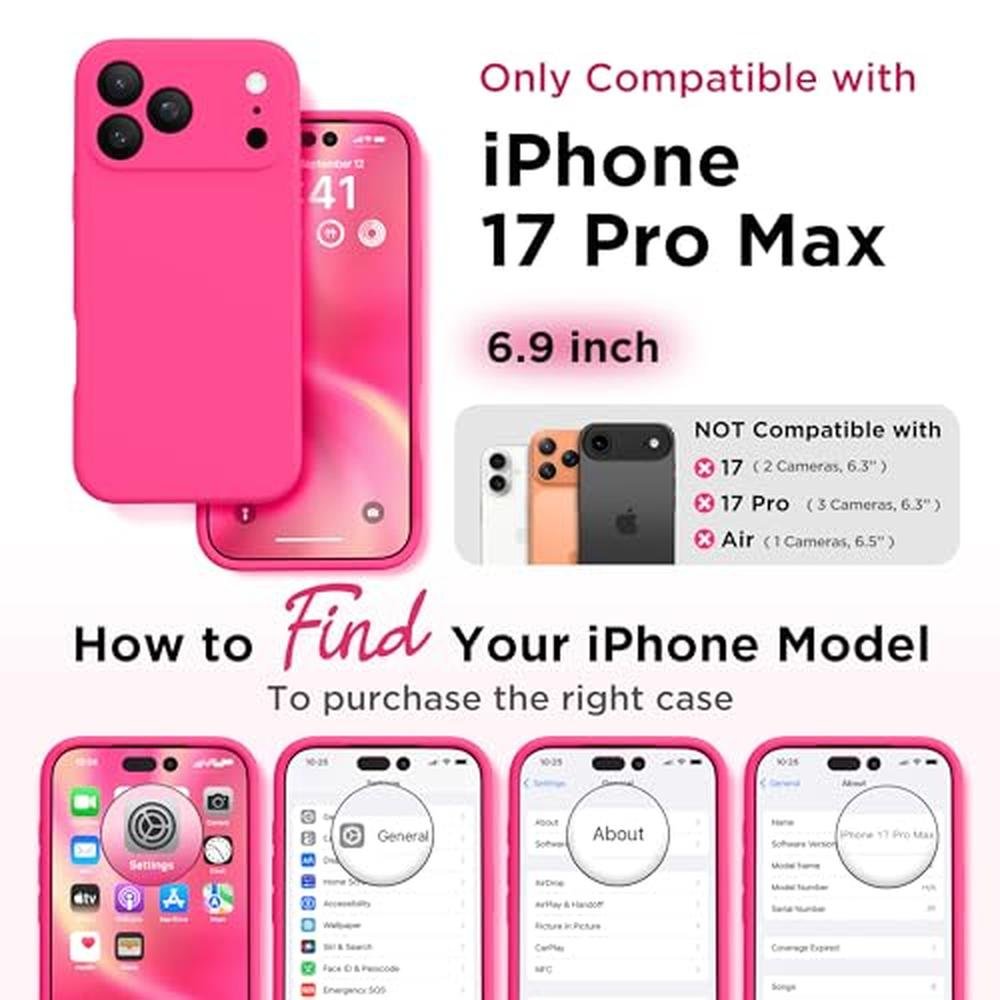 - Premium Liquid Silicone: This case is specifically designed for the iPhone 17 Pro Max. Made from high-quality liquid silicone that offers a soft, comfortable feel and a secure grip. Its 4-layer structure enhances durability, providing excellent drop protection, while the soft microfiber lining safeguards the back of your phone from scratches