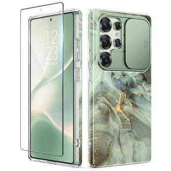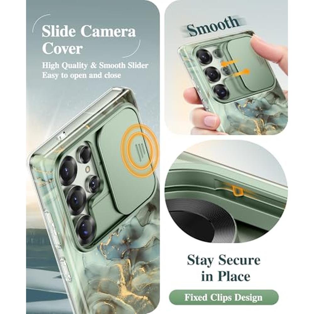 GVIEWIN for Samsung Galaxy S25 Ultra Case with Slide Camera Cover, [Screen Protector] [Shockproof Military Grade Drop Protection] Marble Slim Fit Hard PC Phone Cover S25 Ultra 6.9" 2025 (Desert Dream)
