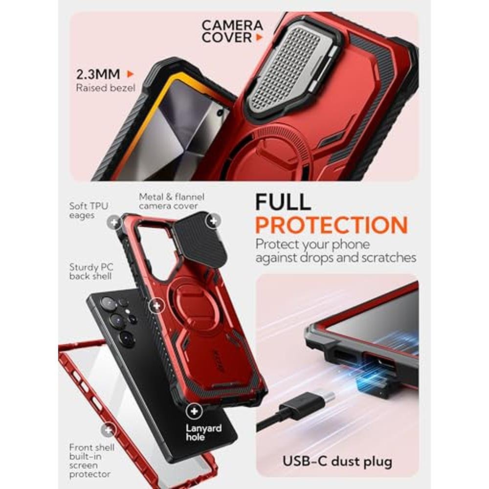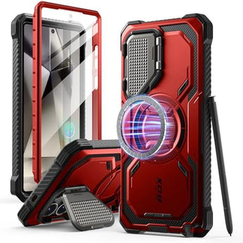 i-Blason Armorbox for Samsung Galaxy S25 Ultra Case MagSafe with Camera Cover Stand [Military Protection] Full-Body Heavy Duty Magnetic Phone Case with Screen Protector for S25 Ultra 6.9 inch, Red
