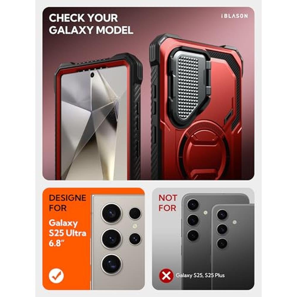 i-Blason Armorbox for Samsung Galaxy S25 Ultra Case with Camera Cover Stand [Military Protection] Full-Body Heavy Duty Magnetic Protcetive Case with Screen Protector & Kickstand What's in Box: 1* Samsung Galaxy S25 Ultra Case with Built-in Camera Cover Stand, Screen Protector and Magnetic Absorption